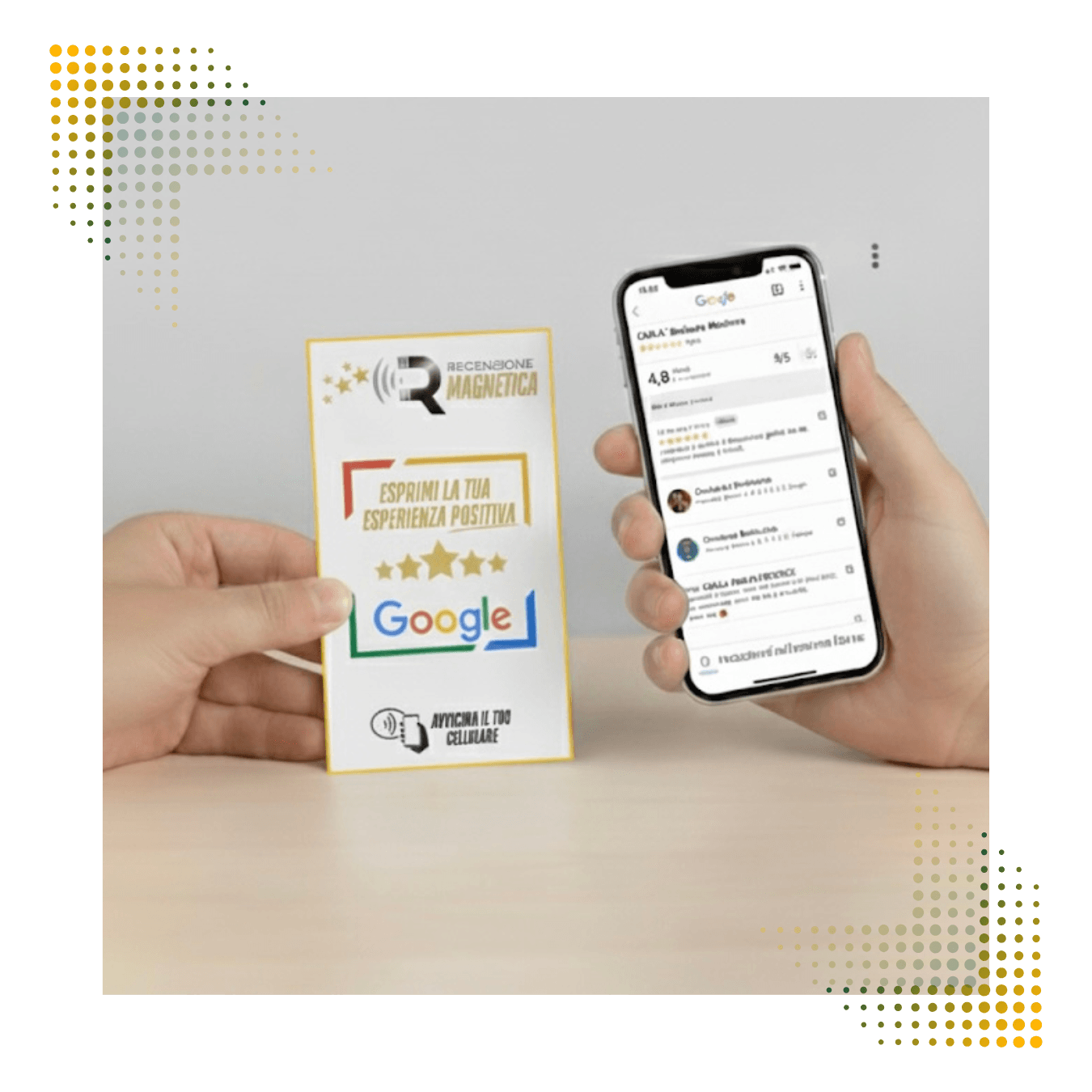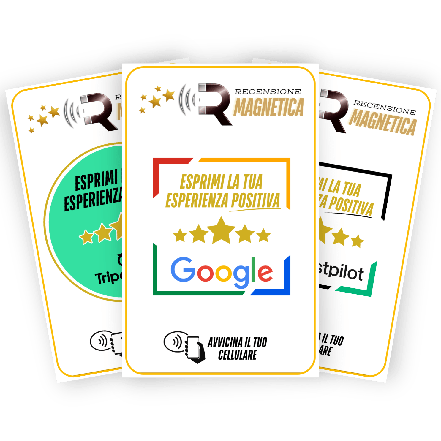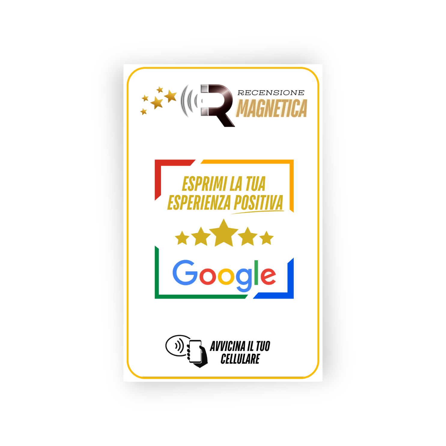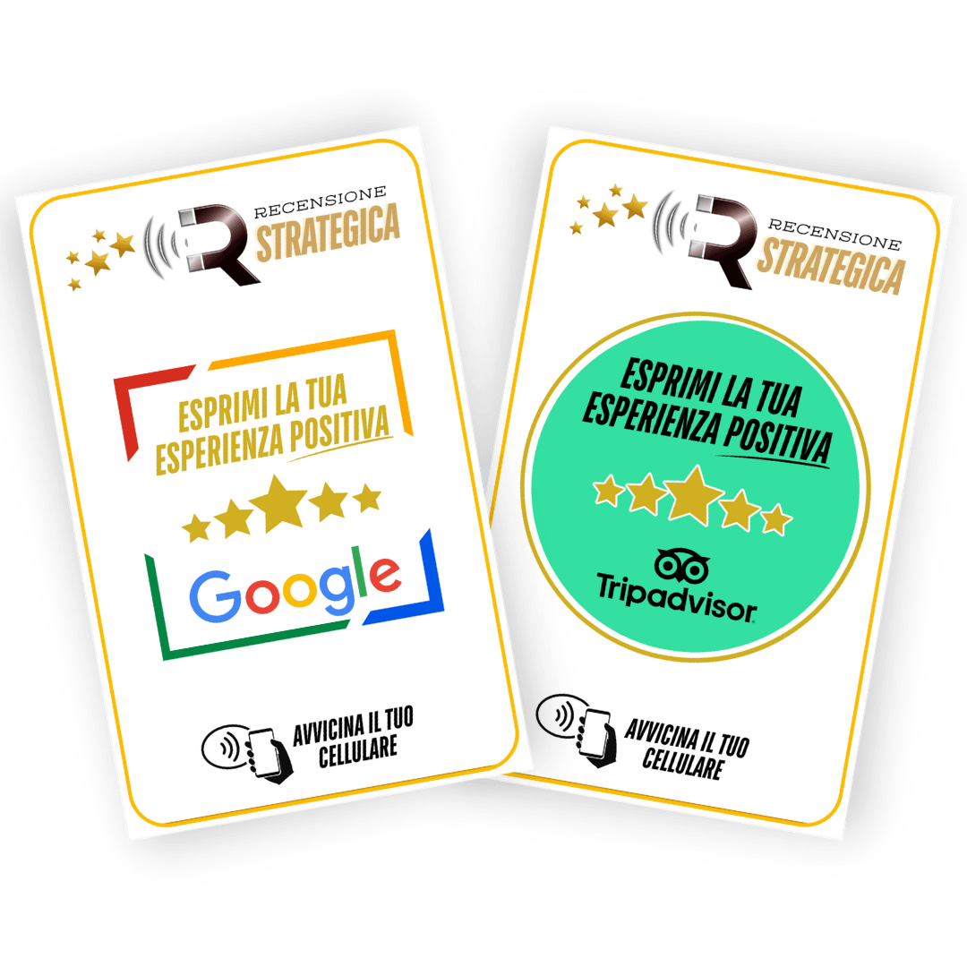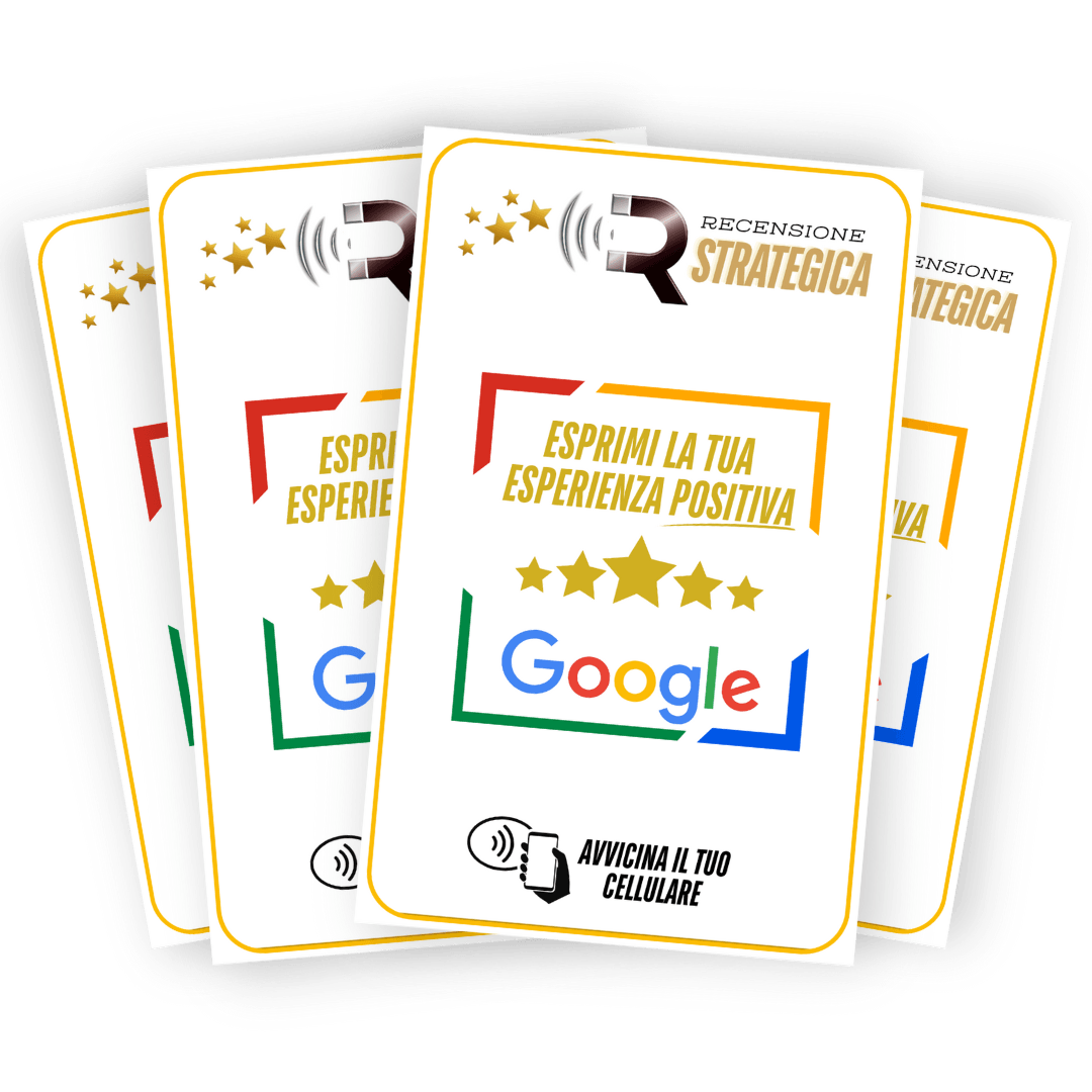 La Card "Recensione Magnetica" utilizza la tecnologia NFC, ed arriva già programmata. Nessun QR code, nessun link complicato.